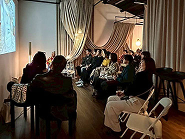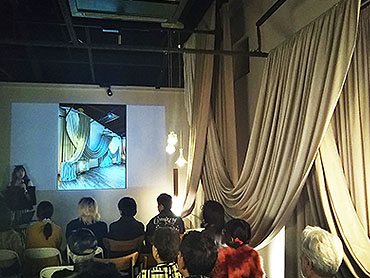 “空間を構成する要素=エレメント”を体験的に学ぶための一日。デザイナーの案内でショールームを巡り、素材とツールの世界を感じながら、空間をつくるリアルに触れました。そして、最後はElightingショールームでのトークセッション「Color Me Beautiful」。光と色、素材と空気、そして人とのつながりをテーマに、現役デザイナー・宮地氏と学生が語り合うカジュアルなセッションパーティを開きました。これまでの実績と、デザインに対する姿勢や感性を紹介しながら「ベイビー!」と軽妙洒脱に学生らへ語りかける宮地氏のトークは、ウェルカムドリンクも数杯を重ねヒートアップ。